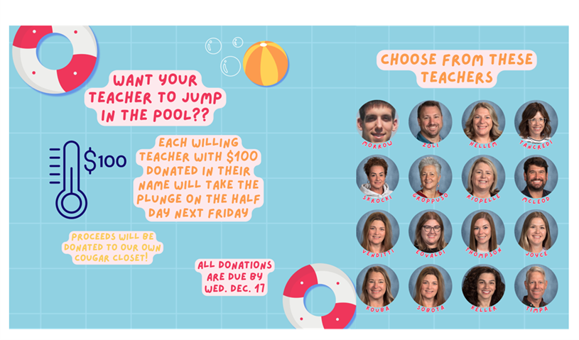 Monetary donations go directly to the Cougar Closet and will be used to restock items throughout the year, ensuring help is always available when a student or family reaches out. Your contribution will help our school community take care of one another and support families when they need it most.